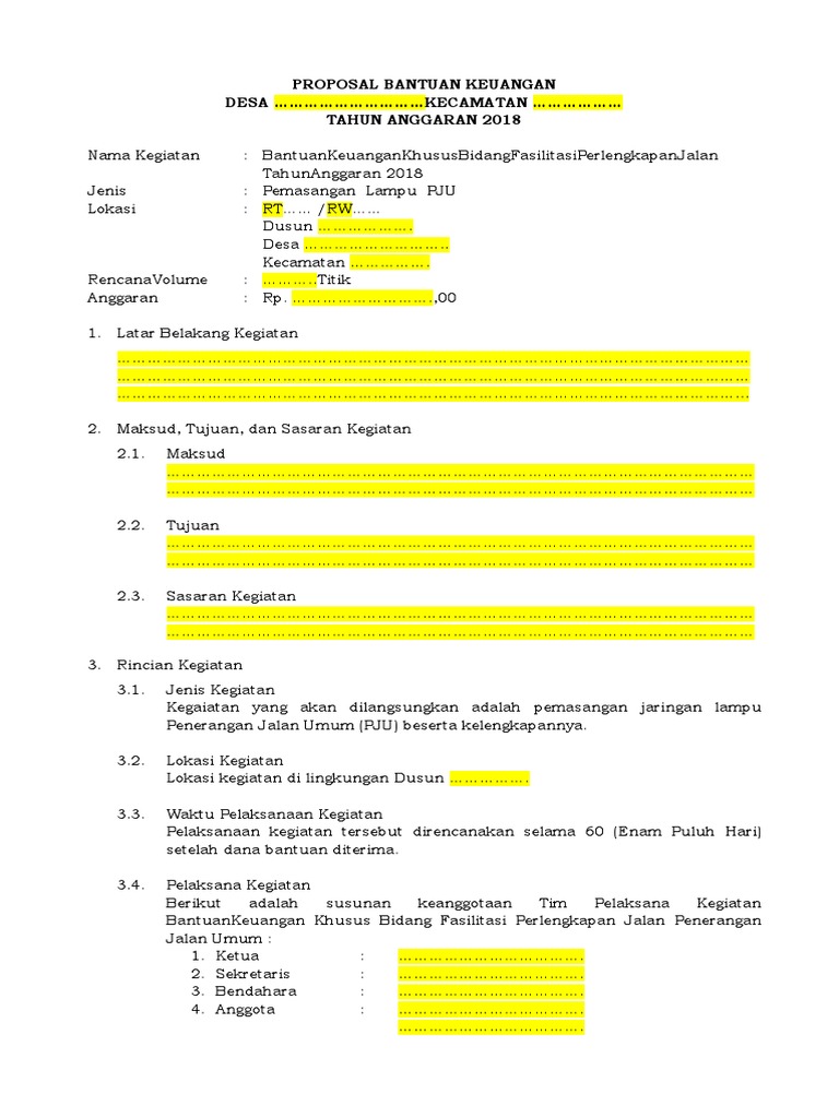 Proposal Pengajuan Pju Pdf from imgv2-1-f.scribdassets.com Sahabat 99, pengajuan bantuan dana bisa gagal jika kamu tidak. Profil delegasi demikian proposal ini kami susun, dengan harapan dapat menjadi pertimbangan serta memperoleh tanggapan dari berbagai pihak yang peduli dan mendukung pendanaan kegiatan ini. Pemasangan lampu penerangan jalan pada perumahan. Definisi pengajuan proposal penelitian adalah salah satu aktifitas untuk menunjang kegiatan tridarma perguruan tinggi yang merupakan tupoksi dari tenaga dosen. Proposal permohonan bantuan team futsal tahun anggaran 2014. Proposal pju tenaga surya pdf free download. Silakan isikan nominal dana yang diajukan, dan unggah proposal 17. Dusun kuro desa kuro kecamatan karangbinangun kabupaten lamongan.