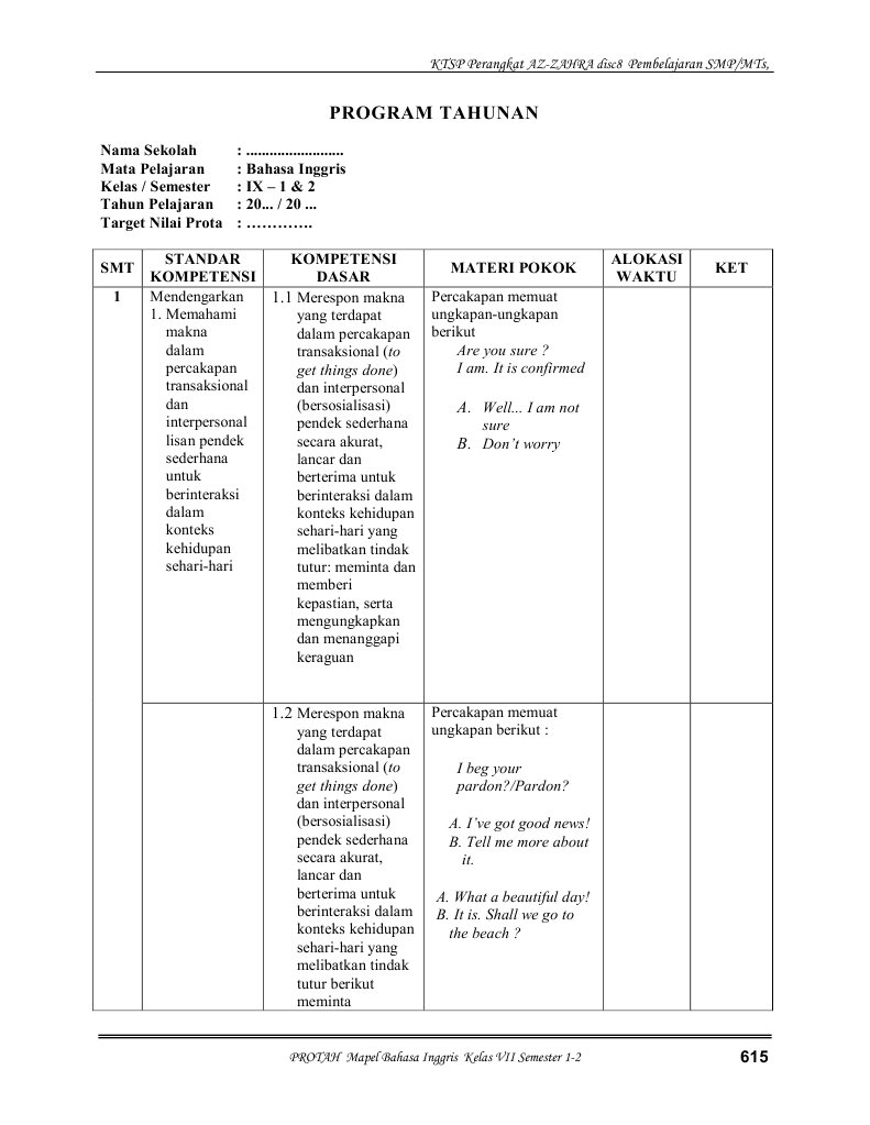 Prota dan promes smp kelas 9 kurikulum 2013.